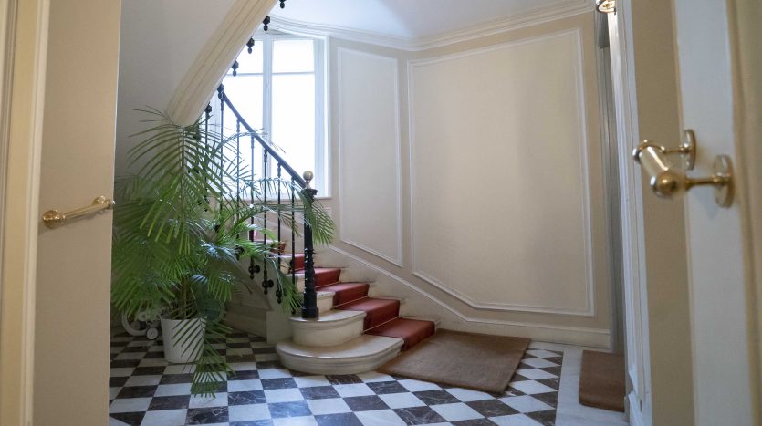 Dans un immeuble de grand standing a proximité immédiate de l’Arc de Triomphe, un appartement au 4eme étage avec ASC., récemment refait à neuf composé d’une entrée, un double séjour, 3/4 chambres, une cuisine, une salle de bains et deux salles d’eaux. Parquet, moulures, cheminée.
